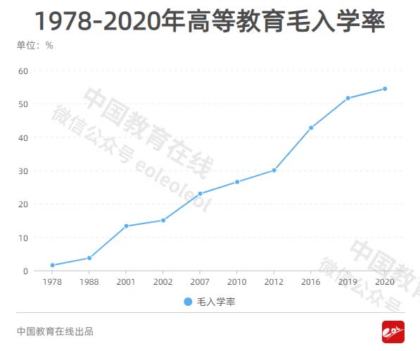 2020年,全國(guó)高等教育毛入學(xué)率達(dá)到54.4%,高等教育持續(xù)向普及化快速邁進(jìn)。